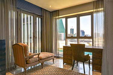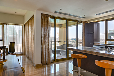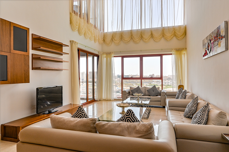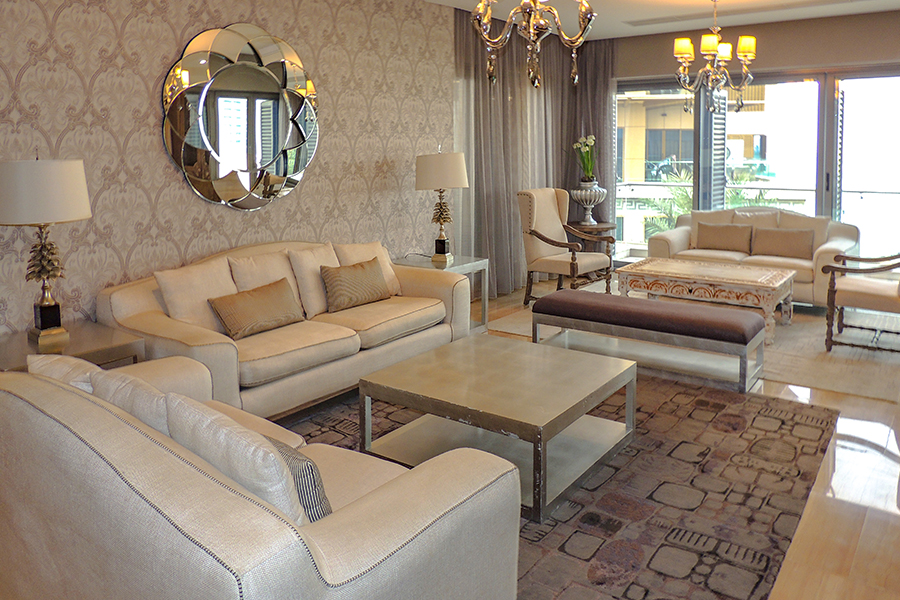 Maintenance free exterior with full granite façade, combined with aluminum, sun breakers and tinted double glazed windows. The main entrance rivals with the most luxurious five star reception halls. Fully tiled with either Cream Marphil or Calcatta first quality marble, it features an American walnut impressive desk behind which a round the clock concierge is delighted to serve the residents.
